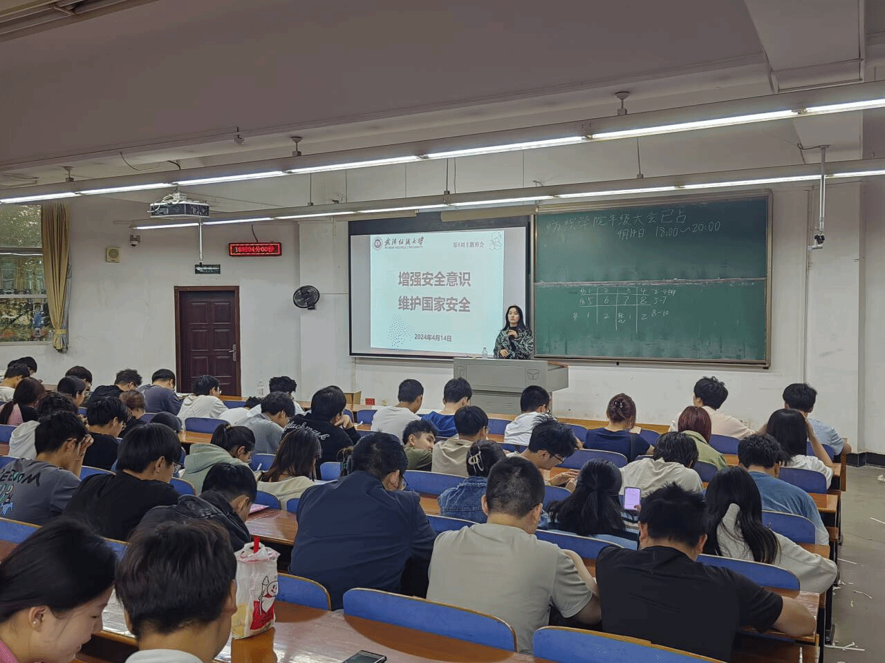 22级于2024年4月14日开展“增强安全意识,维护国家安全”年级大会,此次活动由22级辅导员王然主持,22级全体学生参与。