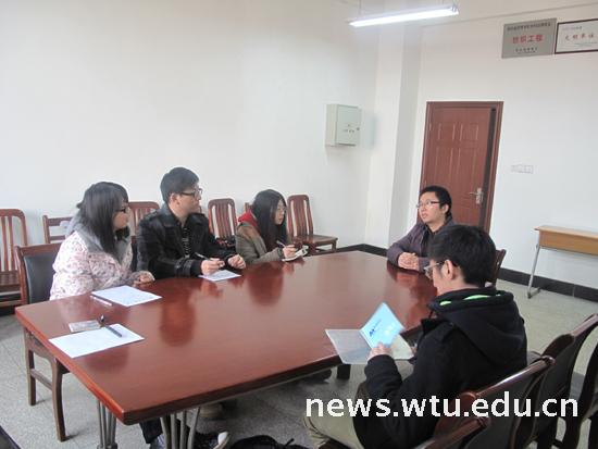 袁威同学还和纺织、机械、环境等学院部分有出国深造意向的同学进行了座谈,对如何规划当前学业、如何准备外语考试、如何申请国外高校及适应国外大学生活等问题进行了深入地交流,并详细讲解了出国留学个人简历及申请书的写作要求。