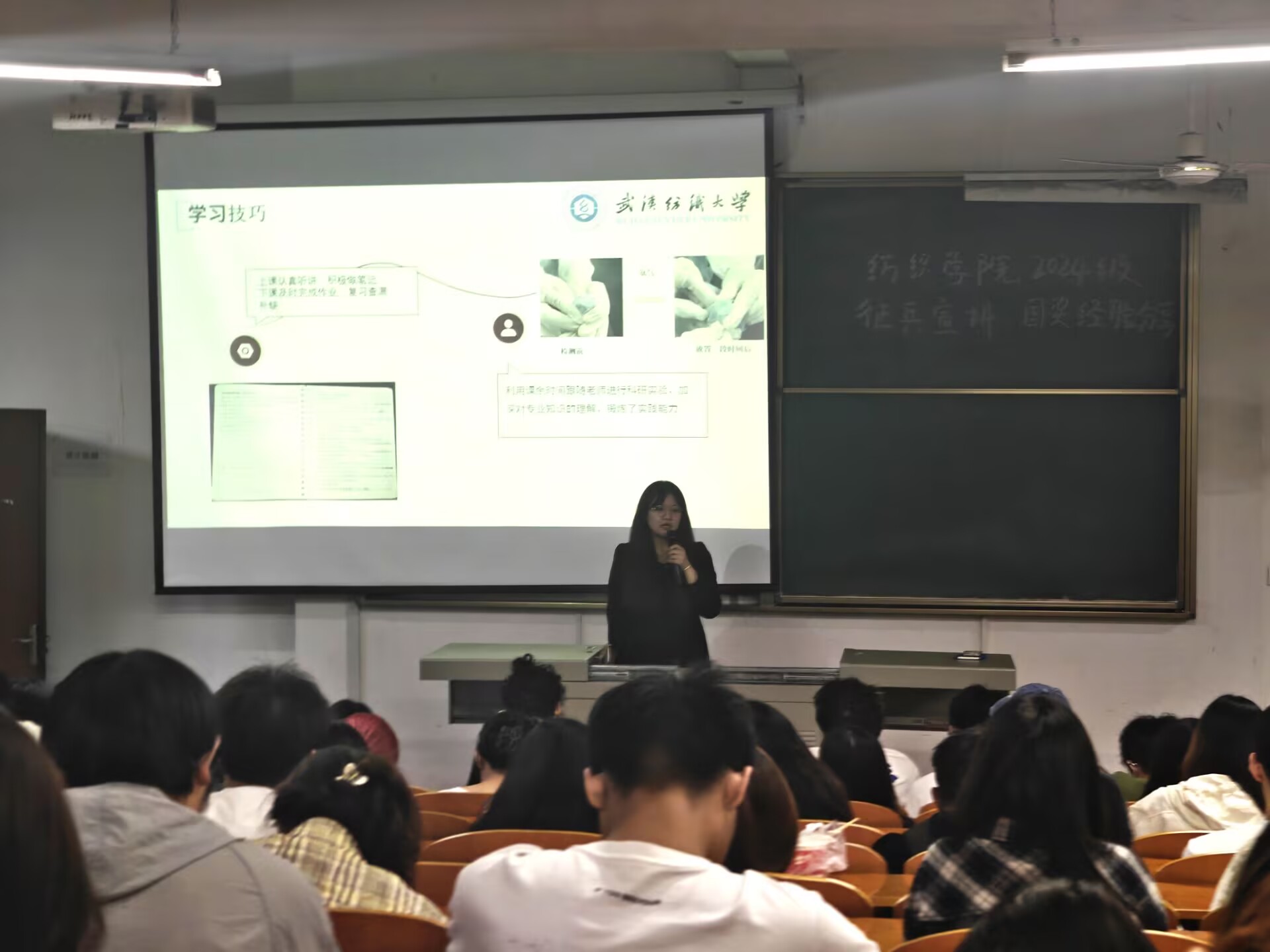 “青春榜样,织梦前行”朋辈领航经验分享会在8教Ft101举行。本次分享会由辅导员薛萍主持,24级全体学生参与。