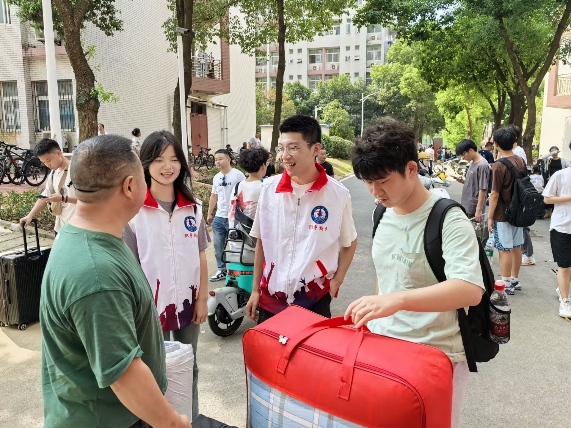 上午6时,当第一缕阳光洒向校园,迎新工作人员已整装待发,在13栋“织争朝夕”一站式学生社区以最饱满的热情迎接同学们的到来。报道现场,各项工作有条不紊地进行着,志愿者们用实际行动诠释着“以心换新”的迎新理念。