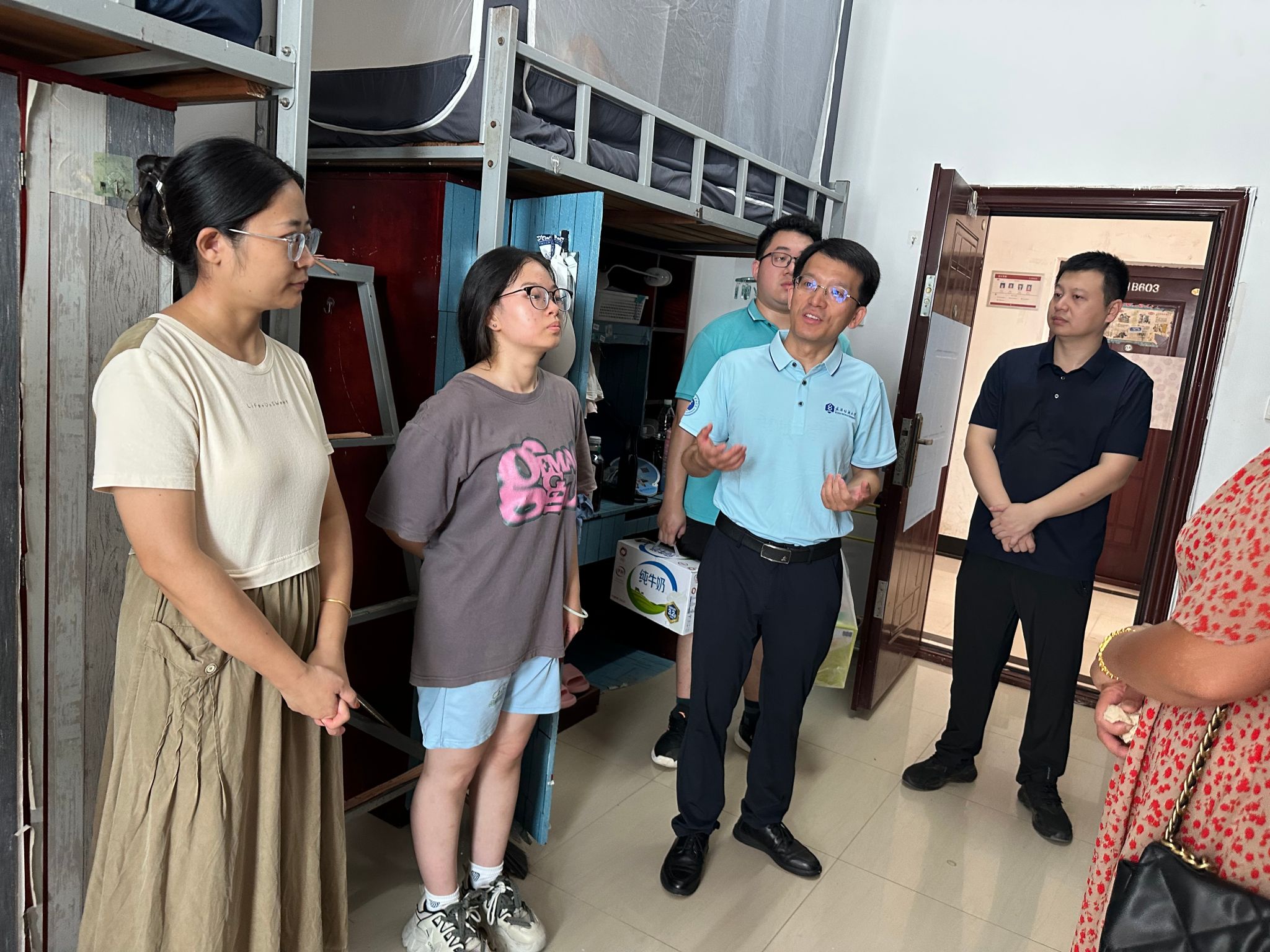 学院党委书记朱张军一行早早来到了迎新现场,了解报道情况,慰问现场志愿者,并前往新生宿舍与学生进行深入交流。在11B604宿舍中,向新生蔡金怡送上徐卫林院士的《航空航天纺织品探秘》一书,勉励同学们要以更加饱满的心态去面对新学期的学习和生活,不负青春,练就真才实学,为国家科技自主创新贡献自己的力量。