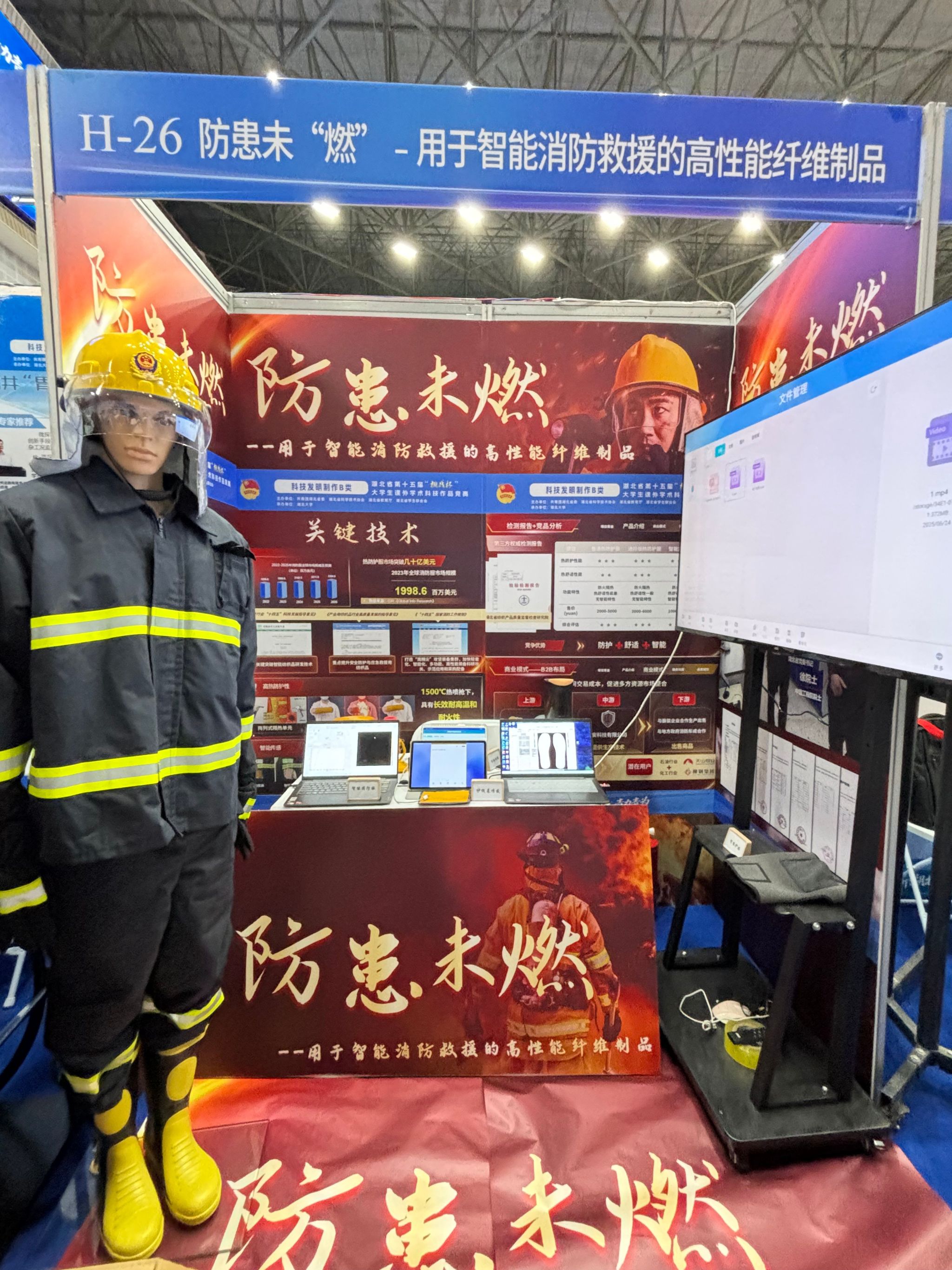 广泛动员、精心组织,多次召开专项会议部署工作,邀请专家开展多轮项目培育与深度打磨,为参赛团队提供全方位支持。最终,由刘可帅教授和许多教授指导,由秦缘、彭智勇、叶森源、姜海洋等八位同学共同参与的项目《防患未“燃”——用于智能消防救援的高性能纤维制品》突出重围,荣获省级二等奖,展现了纺院学子在科技创新领域的卓越实力。