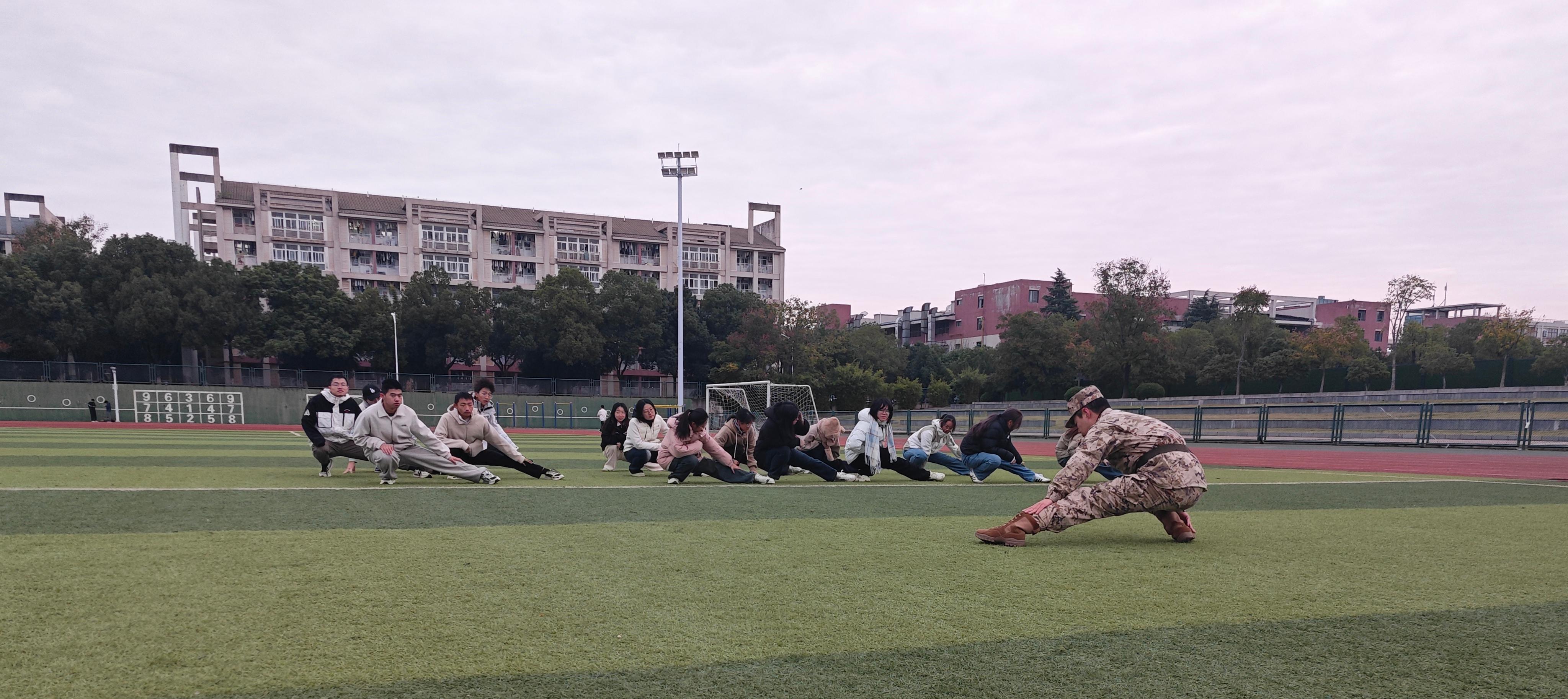 每日早晨7时整,哨声划破晨雾,全体同学迅速列队集结,整装待发。无论晴雨寒暑,晨跑队伍始终如约而至:晴好之日,步伐整齐划一,踏响青春节拍;细雨朦胧时,雨丝难阻前行,身影愈发坚定。若有同学体力不支,身旁伙伴总会缓步陪伴、轻声鼓励,彰显“不落一人”的团队温度。在日复一日的集体奔赴中,学子们不仅强健了体魄,更在相互支撑中深化了信任与归属,淬炼出攻坚克难所必需的团队韧性。