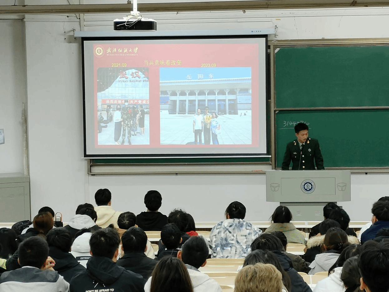 于2023年11月30日在3-T202开展了2024年征兵宣传,此次征兵宣传由优秀入伍士兵郭子扬主讲。