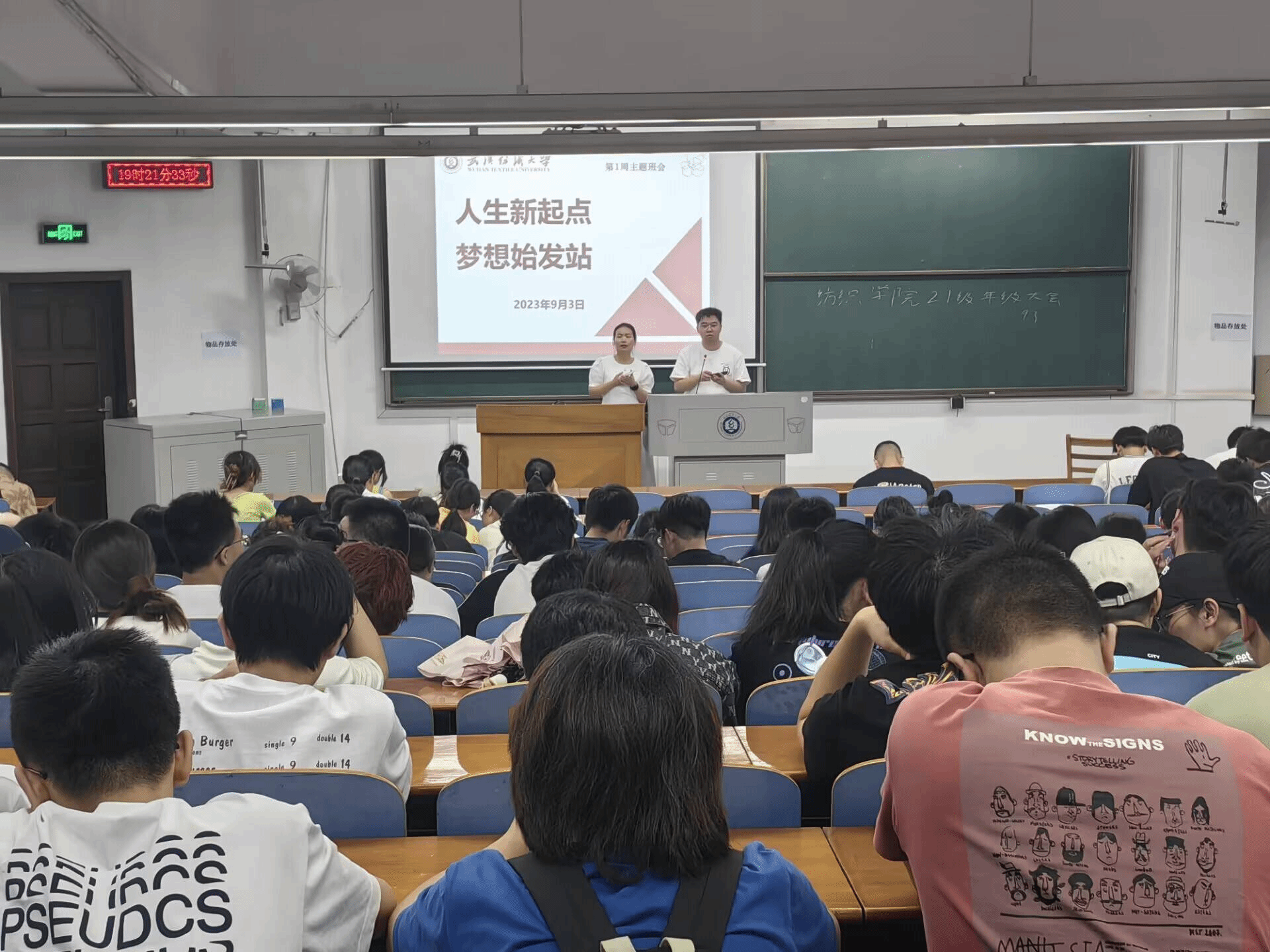 21级于2023年9月3日开展“人生梦起点,梦想始发站”年级大会,由21级辅导员张竣青老师主持,全体学生共同参与。