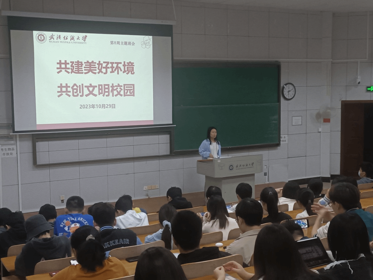 在本次班会上,张竣青老师通过形象生动的实例和准确详尽的数据,向同学们展示了环保和文明校园的重要性。其中,重点涉及了宿舍文明、课堂文明、举止文明、就餐文明、网络文明、图书馆文明以及出行文明等七大方面的在校文明规范。