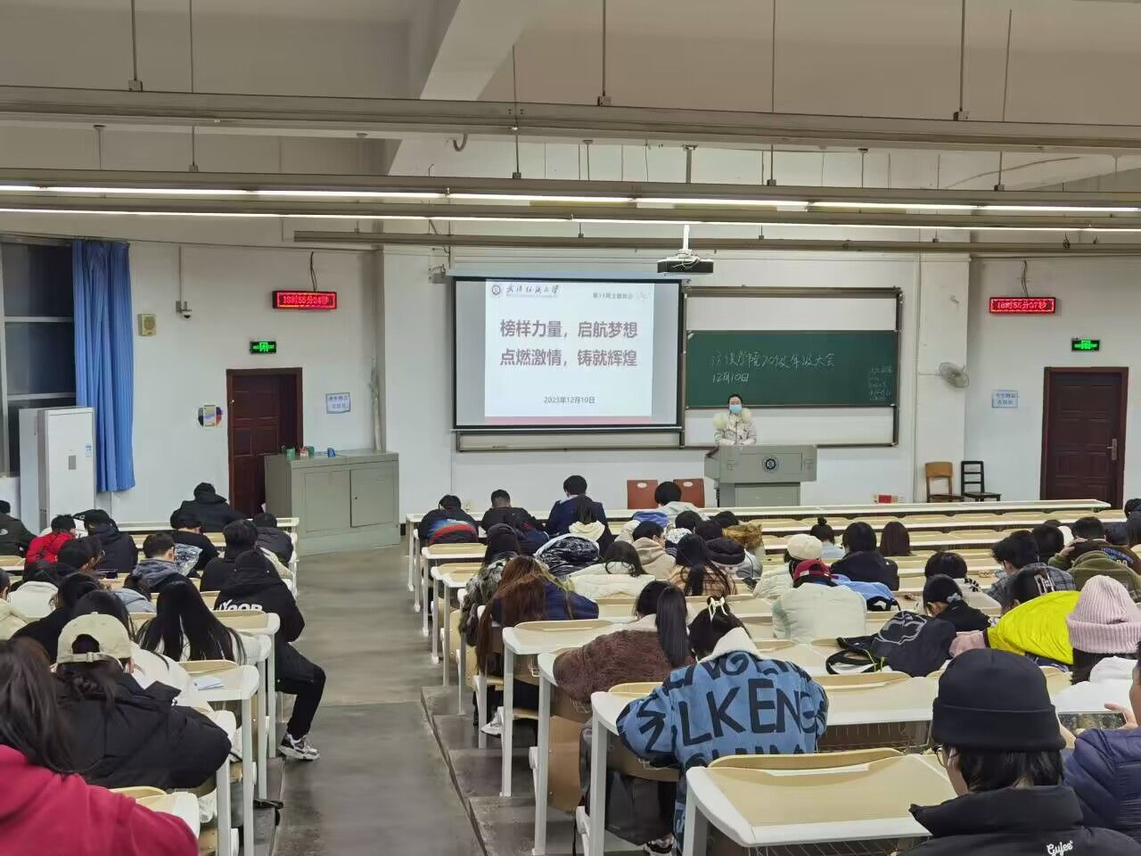 于2023年12月10日开展题为“榜样力量,启航梦想”主题班会,旨在提升同学们的团队协作能力、增强班级凝聚力,提高同学们对维护和谐班级的认知和意识。
