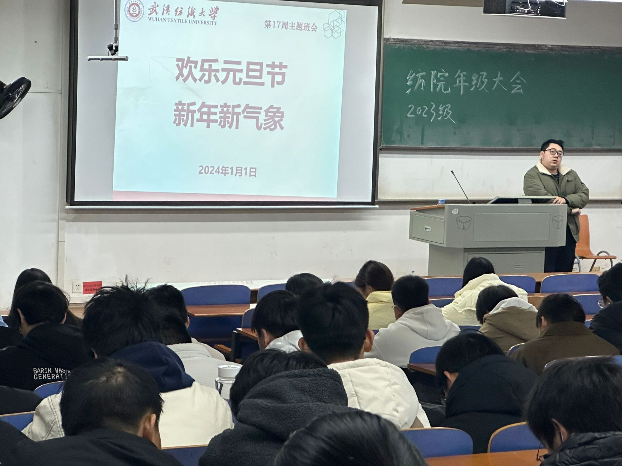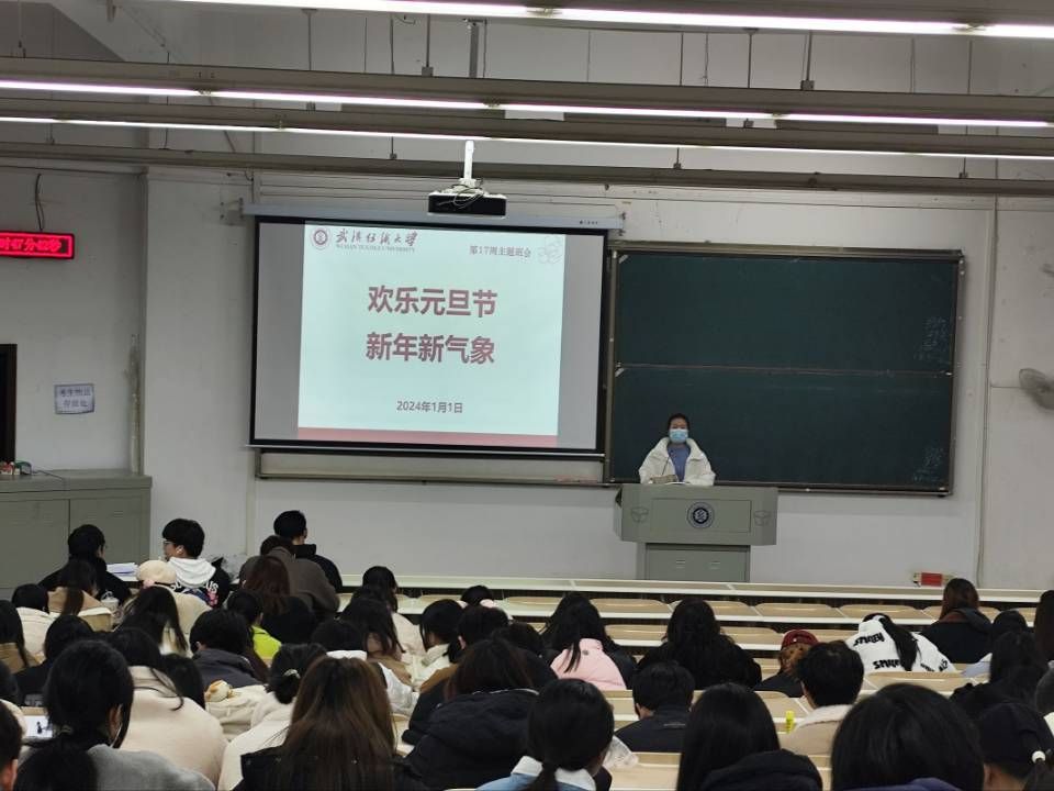于2024年1月1日晚举行了本学期第十七周的晚点名班会。该主题班会旨在祝福同学们在新的一年里,继续保持奋斗状态,不断努力,不断进步。展现自己的才华和精神风貌,为将自己打造成更加优秀的人才而努力。