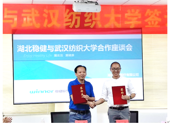会上,院长张如全教授详细介绍了我院的科研情况,重点推介了我院的科研成果,并就相关的 科研合作给出了中肯的建议。与会专家和企业负责人频频点头,并一致认为将以此为契机进一步强化企业和学院联合攻关的技术合作,提升合作层次和水平,并就目前企业中存在的共性技术问题进行了深入讨论。学院参会人员也分别介绍了各自的研究情况和可为企业提供技术服务的结合点。湖北稳健医疗有限公司总经理纪华对我院的参访表示了热烈欢迎,在详细介绍了集团情况后,期望未来公司和学院在就业、人才培养、联合攻关和平台建设等方面加强合作,更好地服务纺织行业、服务湖北地方经济。