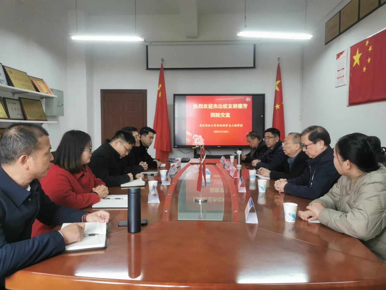 草木蔓发,春山可望。228上午纺织学院迎来杰出校友胡德芳返校,8H504举行优秀校友座谈会。学院党委书记朱张军、院长蔡光明、副院长柯薇、副书记李亮及教师代表参加本次会议会议由朱张军主持。