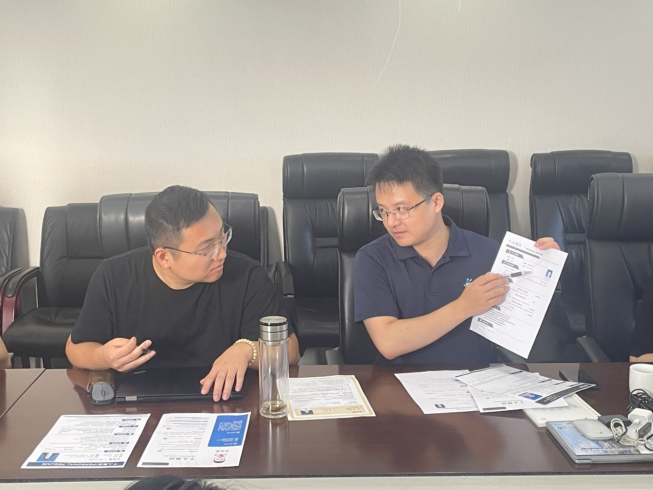 图为恒逸集团人事部门成员指导团队成员简历