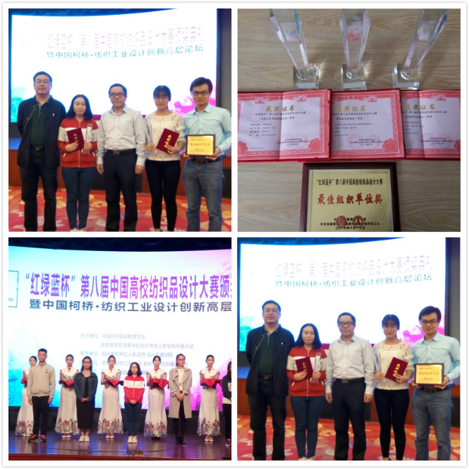 2016年10月17日,“红绿蓝杯”第八届中国高校纺织品设计大赛颁奖典礼暨中国柯桥·纺织工业设计创新高层论坛在浙江绍兴举行,我校获得“最佳组织单位奖”,我校日本动漫 师生在此项赛事中创历史佳绩,获一等奖3项,二等奖2项,三等奖5项。日本动漫 副院长武继松、指导老师代表陈志军,及学生代表方娟和王虹燕应邀参加了颁奖典礼。 中国高校纺织品设计大赛由中国纺织服装教育学会、教育部高等学校纺织类专业教学指导委员...