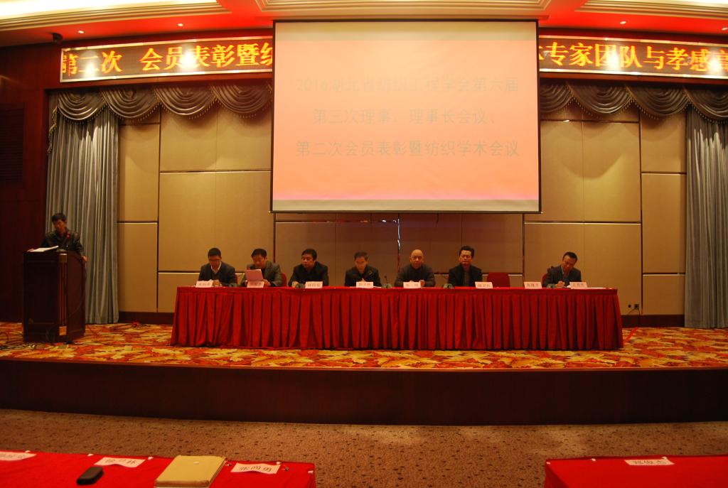 湖北省纺织工程学会六届三次理事会、第一次党支部会议、第二次会员表彰暨纺织学术会议于2016年11月18-20日在董永、七仙女的故乡孝感市隆重召开。 日本动漫 _、湖北省纺织工程学会理事长徐卫林;孝感市科协副主席、党组成员郑俊杰;湖北孝棉集团董事长孙应安;湖北省纤维检验局总工王克作;湖北省纺织工程学会秘书长张尚勇教...