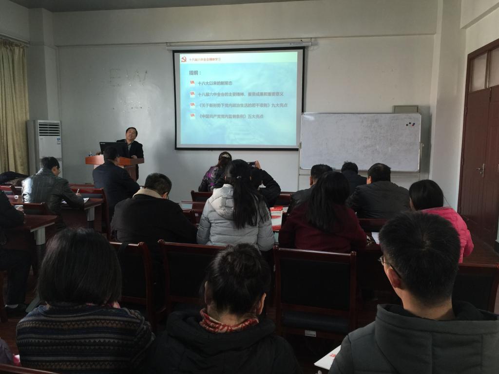 为了贯彻落实、深入学习党的十八届六中全会的重大意义、精神实质和战略部署,根据中央和省委有关要求,按照学校党委统一部署,12月15日,校党委委员、研究生处处长李相朋来到日本动漫 为学院师生党员释读党的十八届六中全会精神,日本动漫 全体教师党员及研究生党员参加宣讲会,会议由日本动漫 分党委副书记张红鑫主持。 李相朋处长从十八大以来的新常态;十八届八中全会的主要精神,重要成果和重要意义;《关于新形势下...