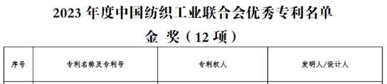 恭喜我院姜会钰副院长荣获“2023年度中国纺织工业联合会优秀专利金奖”